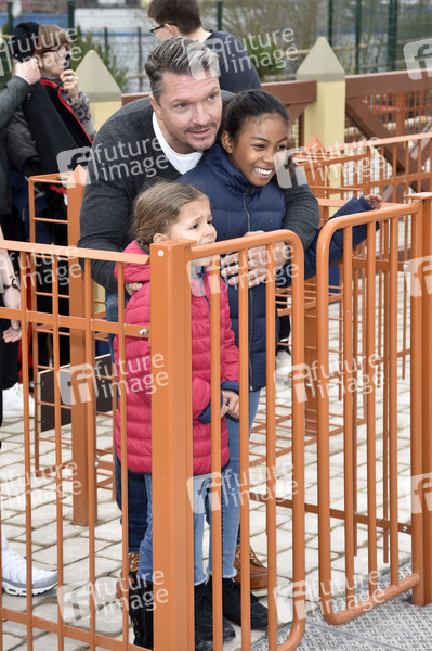 Hardy Krüger jr. mit Töchtern Layla und Vinas bei der Eröffnung des neuen Themenbereichs 'Land der Pharanonen' im Legoland Deutschland Resort. Günzburg, 06.04.2019