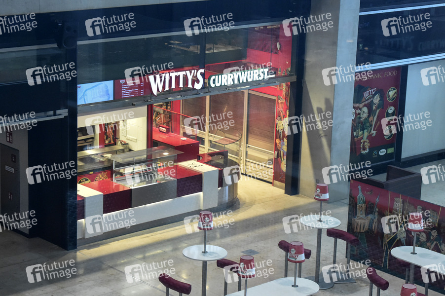 Marketbereich beim Rundgang durch den öffentlichen Bereich des Terminals 1 mit Check-in-Halle und Besucherterrasse auf dem Flughafen Berlin Brandenburg. Schönefeld, 28.10.2020
