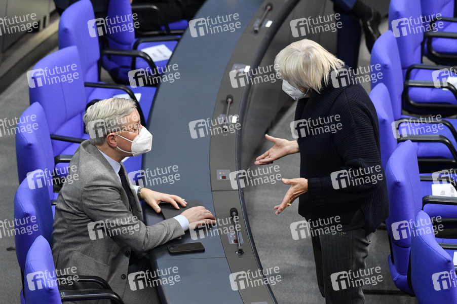 Norbert Röttgen und Claudia Roth in der 208. Sitzung des Deutschen Bundestages im Reichstagsgebäude. Berlin, 10.02.2021