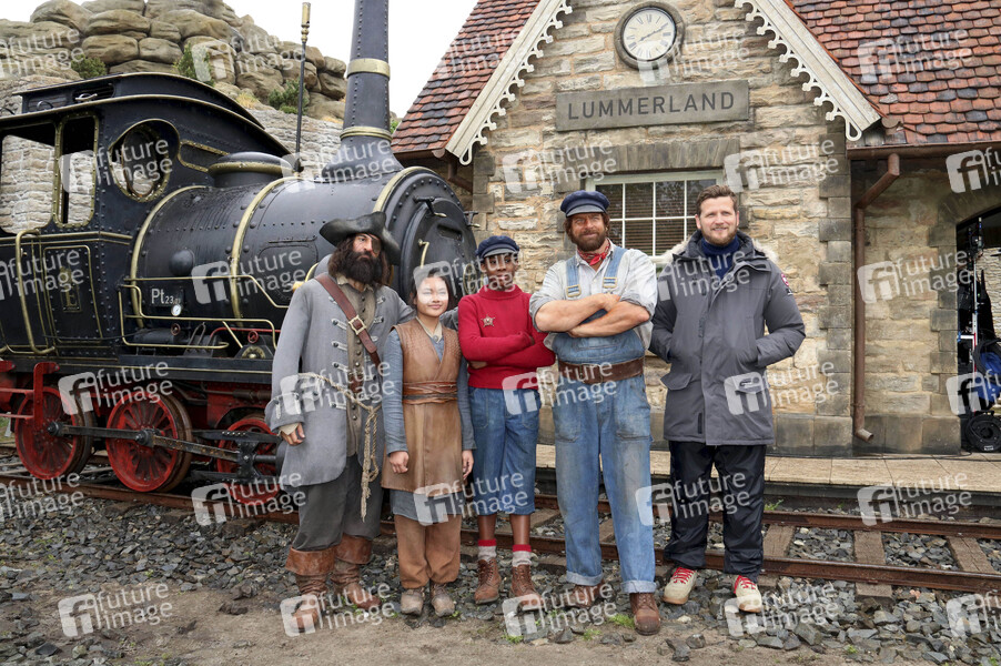 Rick Kavanian, Leighanne Esperanzate, Solomon Gordon, Henning Baum und Dennis Gansel beim Fototermin am Set des Kinofilms 'Jim Knopf und die Wilde 13' im Studio Babelsberg. Potsdam, 22.5.2019