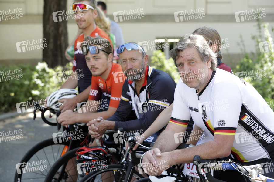 Theo Reinhardt, Johann Walser, Sven Walser und Uwe Rohde beim Start zur 6. Etappe der HerzRadtour zugunsten der Stiftung KinderHerz vor dem Deutschen Herzzentrum Berlin. Berlin, 07.06.2021