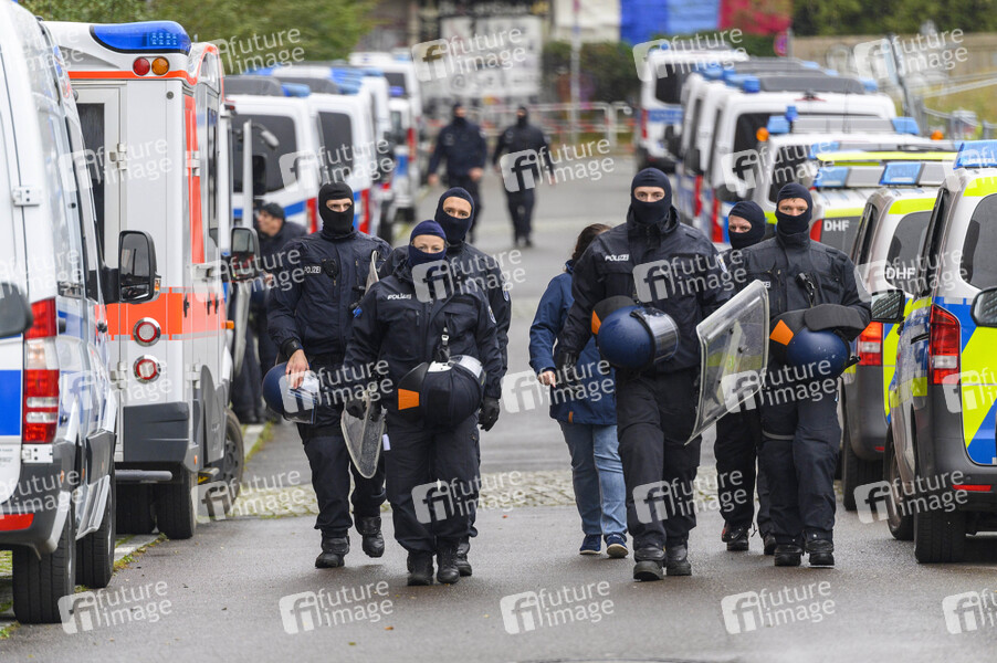 Räumung des linksautonomen Wagenplatzes 'Köpi'. Die Bewohner hatten im Vorfeld angekündigt, sie wollen nicht kampflos aufgeben. Rund eine Stunde haben die Barrikaden des linksautonomen Wagencamps gehalten, dann durchbrach die Polizei den Zaun an mehreren Stellen. Es gab Festnahmen. Berlin, 15.10.2021