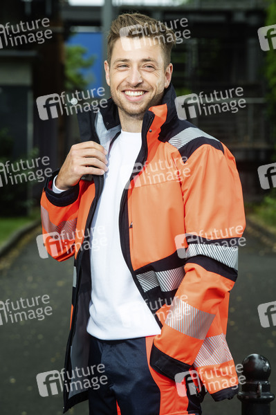 Dominik Flade bei einem Fototermin mit dem dem Deutschen Roten Kreuz e.V. am Set der RTL TV-Serie 'Alles was zählt' in den MMC-Studios in Ossendorf. Der AWZ-Schauspieler bereitet sich mit Hilfe des DRK auf seine Rolle des Rettungssanitäters vor. Köln, 23.06.2021