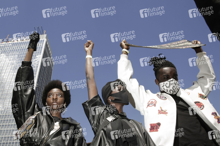 Demonstranten bei der 'Silent Demo' gegen Rassismus am Alexanderplatz. Berlin, 06.06.2020