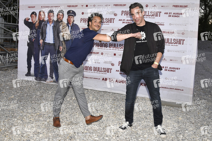 Ercan Acar und Alexander Schubert bei der Premiere des Kinofilms 'Faking Bullshit' beim Filmfest München Pop-Up im PopUp Autokino auf dem Zenith Parkplatz. München, 23.07.2020