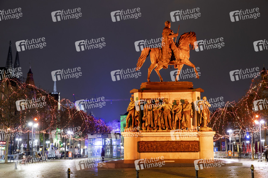 Menschenleerer Heumarkt mit Reiterstandbild in der Kölner Innenstadt wähend der Coronapandemie. Sonst besuchen viele tausend Menschen in der Vorweihnachtszeit den normalerweise hier stattfindenen Weihnachtsmarkt Köln, 08.12.2020