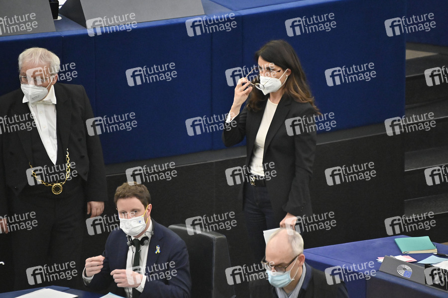 Simona Bonafe bei einer Plenartagung zur Zusammenarbeit und Gemeinsamkeiten des Putin-Regimes und rechtsextremer sowie separatistischer Bewegungen in Europa im Plenarsaal des Europäischen Parlaments. Straßburg, 06.04.2022