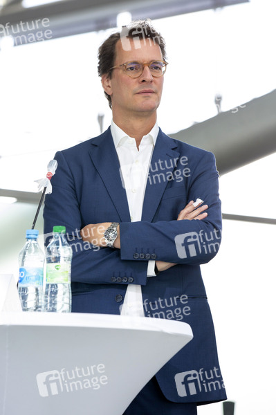 Hendrik Wüst bei der Vorstellung einer technischen Machbarkeitsstudie zum Einsatz bemannter Flugtaxen am Köln Bonn Airport. Köln, 22.07.2020