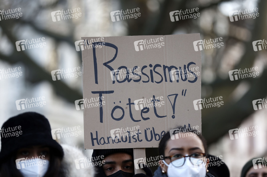 Initiative 19. Februar Hanau, Politik, Anschlag, Gedenken, Rassismus, Demo, Demonstration, Kundgebung, Demonstranten, Andenken, Opfer, Mord, Fremdenhass, Hassverbrechen