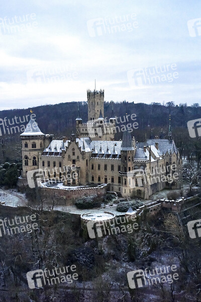 Luftaufnahme, offizieller Wohnsitz der Prinzen von Hannover, Welfen, Bauzeit 1857-1867, Ernst August von Hannover, Neugotik, Architekt: Conrad Wilhelm Hase, Pattensen, Winter, Schnee