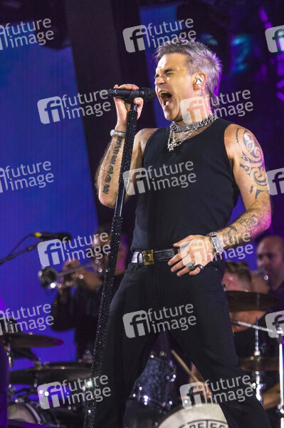 Robbie Williams live bei seinem 'One Show & One Night Only' Konzert auf dem Konzertgelände der Messe München. München, 27.08.2022