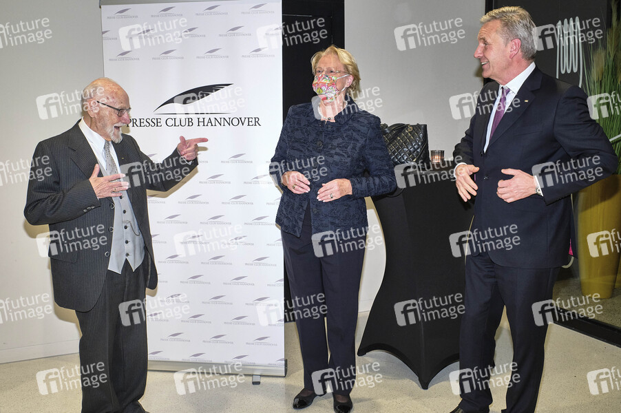 Rolf Zick, Eske Nannen und Christian Wulff bei der Verleihung des Leibniz-Ring-Hannover 2020 an Rolf Zick im Leineschloss. Mit dem Leibniz-Ring-Hannover ehrt der Presse Club Hannover seit 1997 jährlich Persönlichkeiten oder Institutionen, die durch eine herausragende Leistung auf sich aufmerksam gemacht oder durch ihr Lebenswerk ein besonderes Zeichen gesetzt haben. Hannover, 20.10.2020