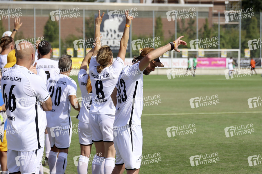 Ingo Pohlmann, Anjorka Strechel, Annabelle Mandeng und Esther Roling beim Benefiz-Fußballspiel 'Kicken mit Herz' 2022 zu Gunsten des Herzzentrums des UKE im Stadium des SC Victoria. Hamburg, 04.09.2022