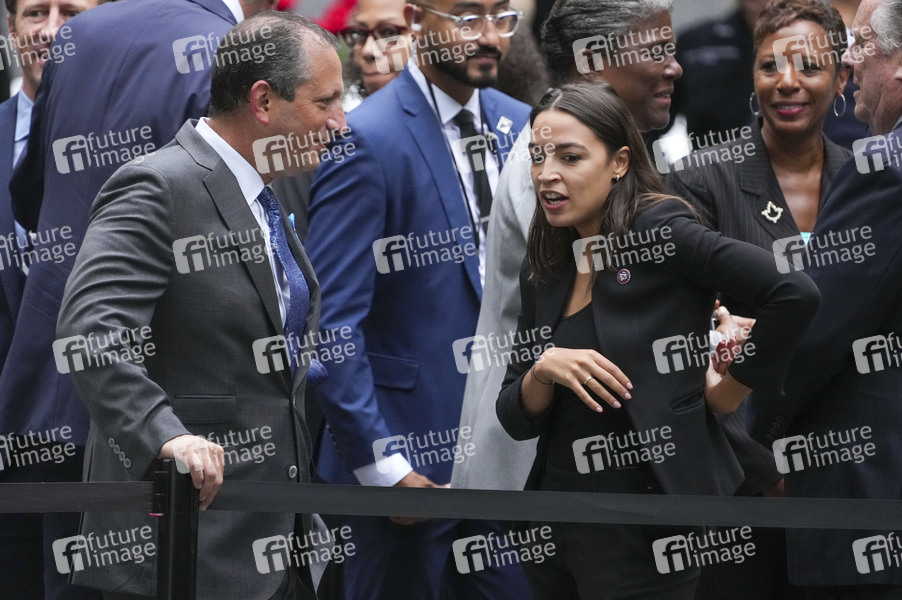 Alexandria Ocasio-Cortez bei der Gedenkfeier für die Opfer der Terroranschläge vor 21 Jahren am 9/11 Memorial. Mit Schweigeminuten und der Verlesung der Namen der fast 3000 Todesopfer haben die USA am Sonntag an die Terroranschläge vom 11. September 2001 erinnert. Am früheren Standort des World Trade Centers in New York verlasen Angehörige wie jedes Jahr am 11. September die Namen aller Anschlagsopfer. New York, 11.09.2022