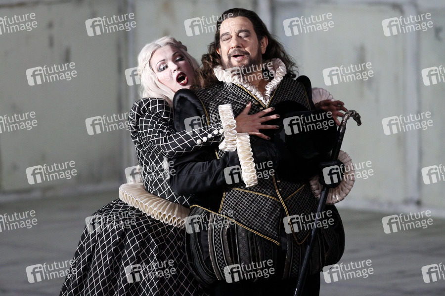 Anna Netrebko (Leonora) und Placido Domingo (Graf Luna) bei der Fotoprobe von Giuseppe Verdis 'Il Trovatore' in der Staatsoper im Schiller Theater. Berlin, 23.11.2013