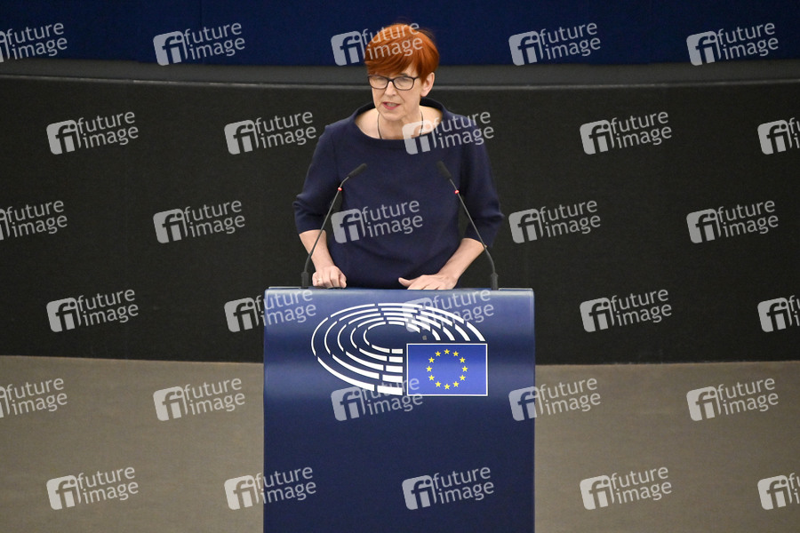 Elzbieta Rafalska bei einer Debatte über die Lage ausgegrenzter Roma-Gemeinschaften in der EU im Plenarsaal des Europäischen Parlaments. Straßburg, 07.04.2022
