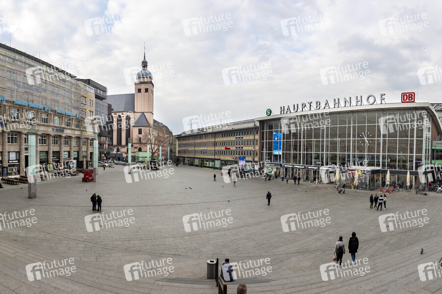 Leerer Bahnhofsvorplatz am Kölner Hauptbahnhof zur Auswirkung des Coronavirus. Köln, 19.03.2020