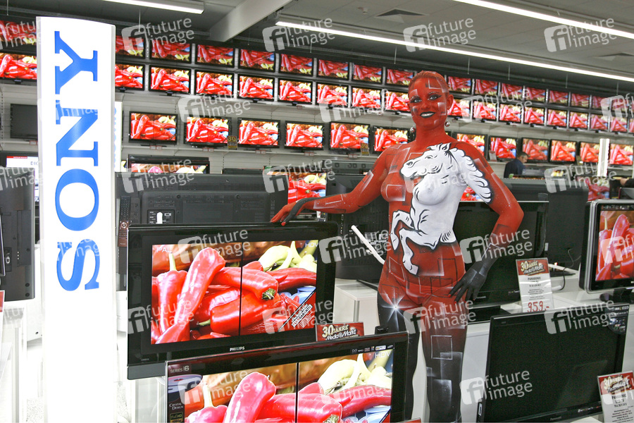 Bodypainting, LCD-Fernseher, TV, Erotik, Frau, nackt, drinnen, weiblich, Muster, erotic, woman, nude, indoor, female, TV set, television
