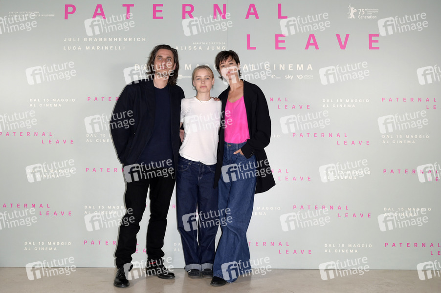 Luca Marinelli, Juli Grabenhenrich und Alissa Jung beim Phototcall zum Kinofilm 'Paternal Leave' im Casa del Cinema in der Villa Borghese. Rom, 06.05.2025