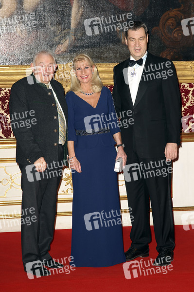 Günther Beckstein und Markus Söder mit Ehefrau Karin Baumüller-Söder beim Neujahrsempfang des Bayerischen Ministerpräsidenten 2020 im Kaisersaal der Residenz. München, 10.01.2020