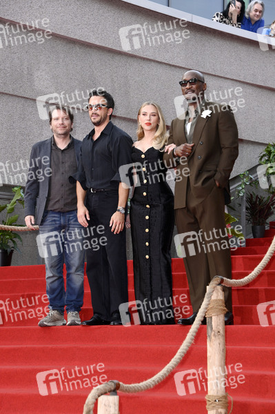 Gareth Edwards, Jonathan Bailey, Scarlett Johansson und Mahershala Ali bei der Premiere des Kinofilms 'Jurassic World: Rebirth / Jurassic World: Die Wiedergeburt' im Zoo Palast. Berlin, 18.06.2025