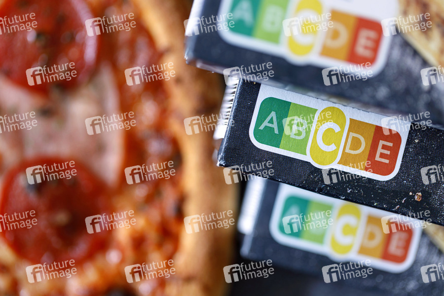 Nutri, Score, Nutri-Scores, Nutriscore, Nahrung, Ernährung, Nährwert, nahrhaft, Lebensmittel, Farbskala, Buchstabenskala, Nährwertqualität, Essensqualität, Pizza, Fertiggerichte, Fertiggericht, Kennzeichnung, Lebensmittel-Kennzeichnung, Energiegehalt, Zucker, gesättigte Fettsäuren, Natriumchlorid, Protein, Ballaststoffe, Obst, Gemüse, Nüsse, Nährwertkennzeichnung von Lebensmitteln, Verbraucher, Verbraucherschutz, Fünf-Farben-Ampel, Fertigprodukt, Fertigprodukte, Fertigpizza, Lebensmittel-Hersteller, Essen, Verbraucher, Orientierung, Einkauf, gesund, Gesundheit, Lebensmittelindustrie, Verbraucherverbände, Symbolbild, Symbolfoto