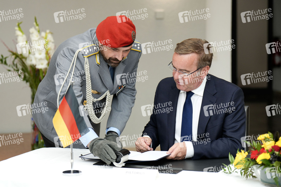 Boris Pistorius beim Antrittsbesuch des Verteidigungsministers des Vereinigten Königreichs mit militärischen Ehren, Kranzniederlegung und Pressestatement im Bendlerblock. Berlin, 24.07.2024