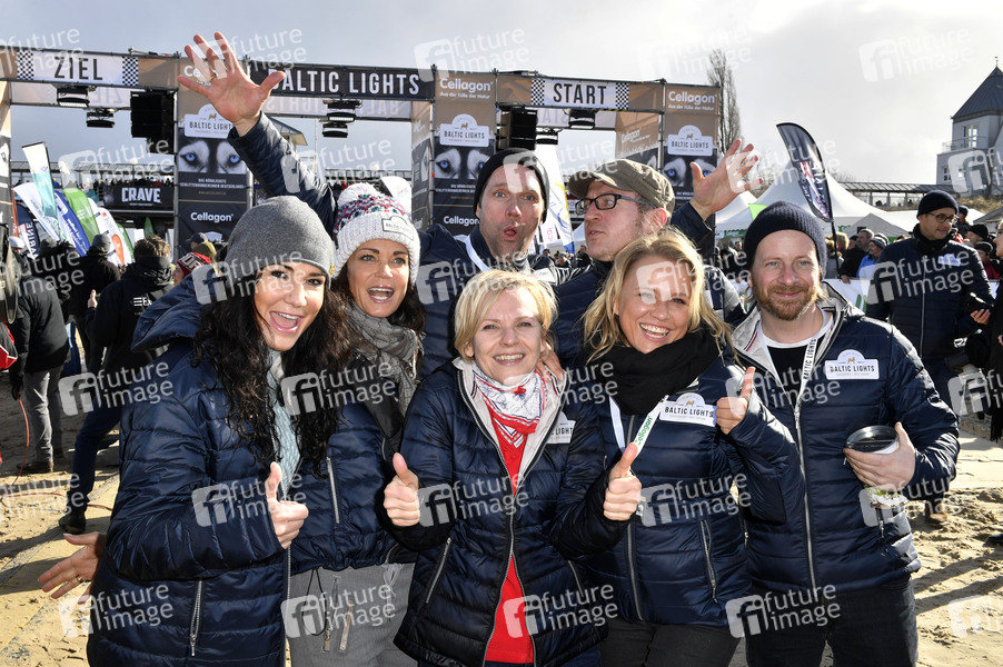 Mariella Ahrens, Gerit Kling, Andrea Kathrin Loewig, Matthias Schloo, Josef Heynert, Nova Meierhenrich und Fabian Busch beim Baltic Lights 2019 Hunderennen zu Gunsten der Welthungerhilfe zwischen der Seebrücke Ahlbeck und der Seebrücke Heringsdorf. Heringsdorf, 09.03.2019