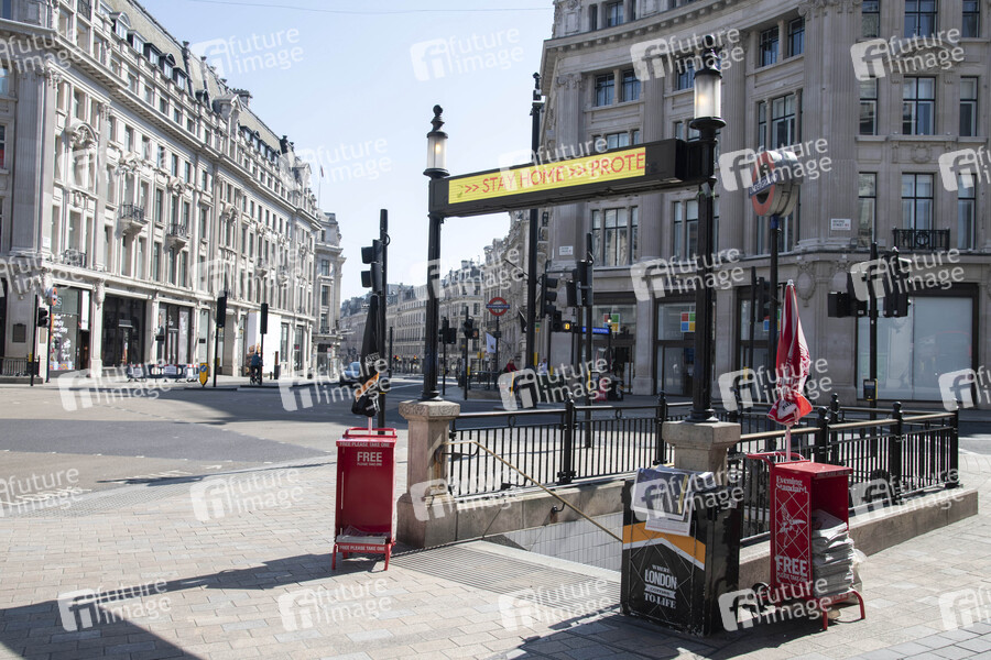 Oxford Circus - Londons Straßen und Touristenattraktionen sind aufgrund des Coronavirus Lockdown menschenleer. London, 05.05.2020