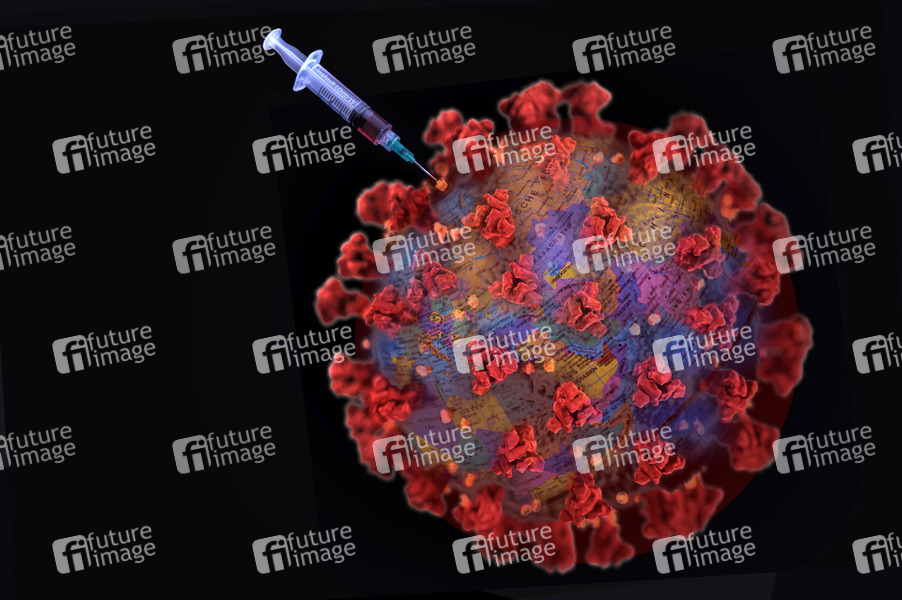 Symbolbild Coronavirus Impfstoff für die Welt - Bildmontage unter Verwendung einer Grafik des CDC released unter public domain