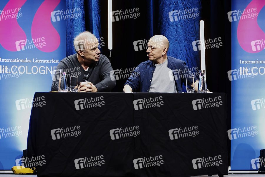 Hubertus Meyer-Burckhardt und Bernhard Hoecker bei der lit.Cologne 2024 Veranstaltung 'Denn sie wissen (noch) nicht, was sie tun' im E-Werk. Köln, 09.03.2024