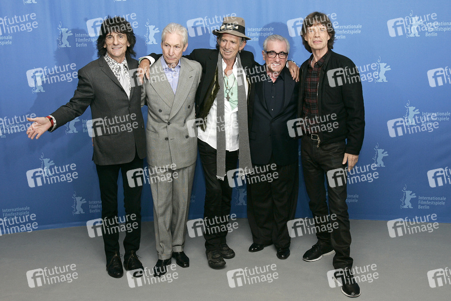 Ron Wood, Charlie Watts, Keith Richards, Martin Scorsese und Mick Jagger beim Photocall zum Kinofilm 'Shine a Light', auf der Berlinale 2008 / 58. Internationale Filmfestspiele Berlin im Hotel Grand Hyatt. Berlin, 07.02.2008