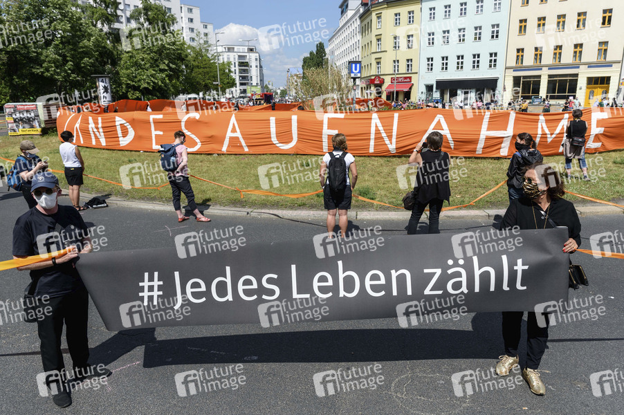 Demonstration vom Bündnis 'Unteilbar' mit einer Menschenkette gegen Rassismus und soziale Ungerechtigkeit vom Brandenburger Tor in Berlin-Mitte bis zum Hermannplatz in Berlin-Neukölln unter dem Motto 'SoGehtSolidarisch'. Berlin, 14.06.2020