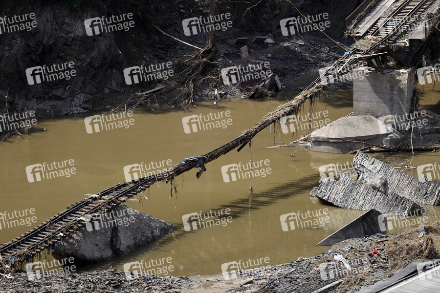 Ahr, Ahrtal, Rech, Bahnstrecke, Streckennetz, Gleise, Brücke, Schienen, Straße, anhaltende Regenfälle, ansteigendes Wasser, Aufräumarbeiten, Aufräumen, Ausnahmesituation, Dauerregen, Deutscher Wetterdienst, DWD, Eifel, Elementarschäden, Existenz, extreme Wetterlage, Extremwetter, Fluss, Flussbett, Flüsse, Flut, Fluthelfer, Flutschaden, Flutschäden, Flutung, Hausrat, Hochwasser, Hochwasserinformationsdienst, Hochwasserlage, Hochwassermarke, Hochwassermeldedienst, Hochwasserschutz, Hochwasserschutzzentrale, Hochwasserwelle, Infrastruktur, Jahrhundertflut, Jahrhundert-Flut, Jahrhunderthochwasser, Jahrhundert-Hochwasser, Katastrophe, Katastrophenfall, Katastrophengebiet, Klimatrend, Klimawandel, Kreis Ahrweiler, kritische Marke, Landstraße, Liter pro Quadratmeter, Luftfeuchtigkeit, nass, Nässe, nasse Straßen, nasser Sommer, Neustart, Niederschlag, Pegelstand, Pegelstände, Regen, Regenfälle, Regenradar, Regenwahrscheinlichkeit, Regenwetter, Scheitelpunkt, Stadtentwässerungsbetriebe, Starkregen, stehendes Wetter, steigender Pegel, Schlamm, Sturzbach, Sturzbäche, Tief Bernd, Tiefdruckgebiet, überflutet, Überflutung, überschwemmt, Überschwemmung, Überschwemmungen, unter Wasser, Unwetter, unwetterbedingte Feuerwehreinsätze, Unwetterwarnung, Versicherungsschäden, Vulkaneifel, Wasser, Wasser pro Quadratmeter, Wasserschäden, Wasserstand, Wasserstände, Wetter, Wetterextreme, Wetterextrem, Wetterlage, Wetterprognose, Wettervorhersage, Wiederaufbau, Zerstörung, Zerstörungen, Symbolbild, Symbolfoto