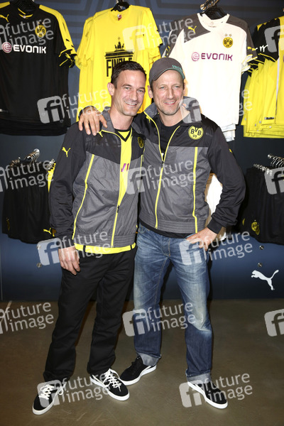 Soenke Moehring und Wotan Wilke Möhring beim Presseevent des Borussia Dortmund Ausstatters Puma im Puma Flagship Store. Berlin, 16.05.2014