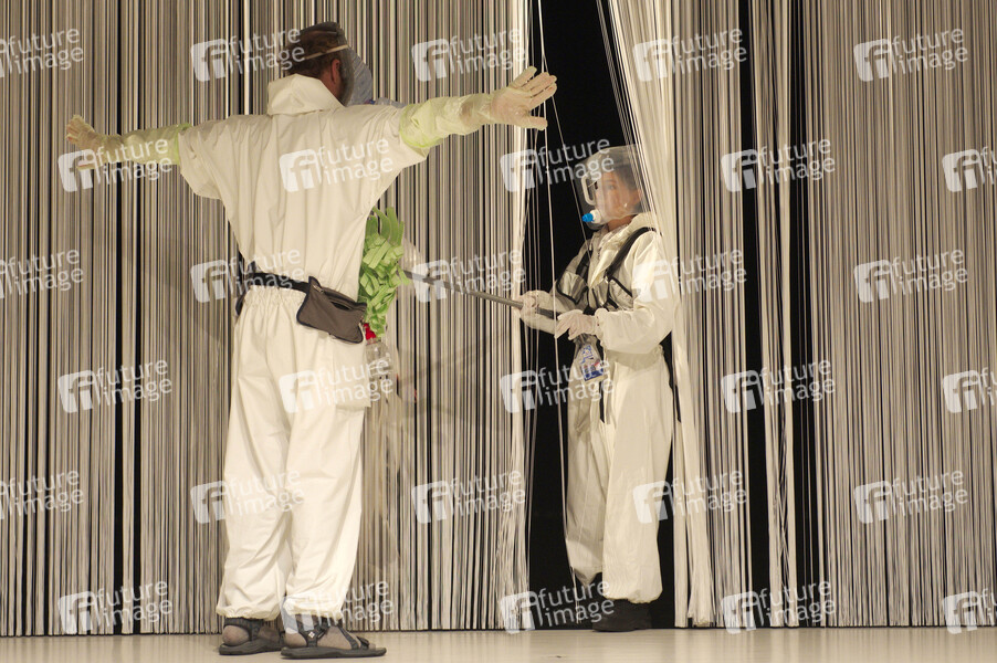 Niels Bormann und Lea Draeger bei der Fotoprobe zum Theaterstück 'Death Positive - States of Emergency' im Maxim Gorki Theater. Berlin, 30.09.2020