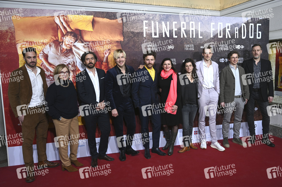 Martin Heisler, Dorothee Erpenstein, David Dietl, Albrecht Schuch, Friedrich Mücke, Barbara Albert, Eva Kemme, Daniel Sträßer, Andreas Perzl und Frank Jastfelder bei der Premiere der Sky TV-Serie 'Funeral for a Dog' im Gloria Palast. München, 01.03.2022