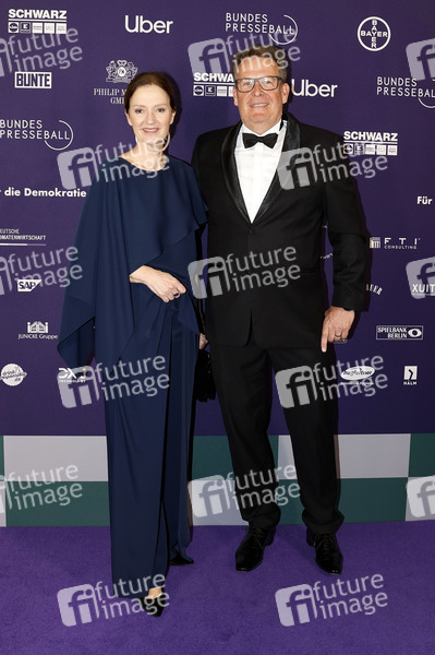 Bettina Schausten mit Ehemann Thomas Fuhrmann beim 72. Bundespresseball 2025 im Hotel Adlon Kempinski. Berlin, 04.04.2025