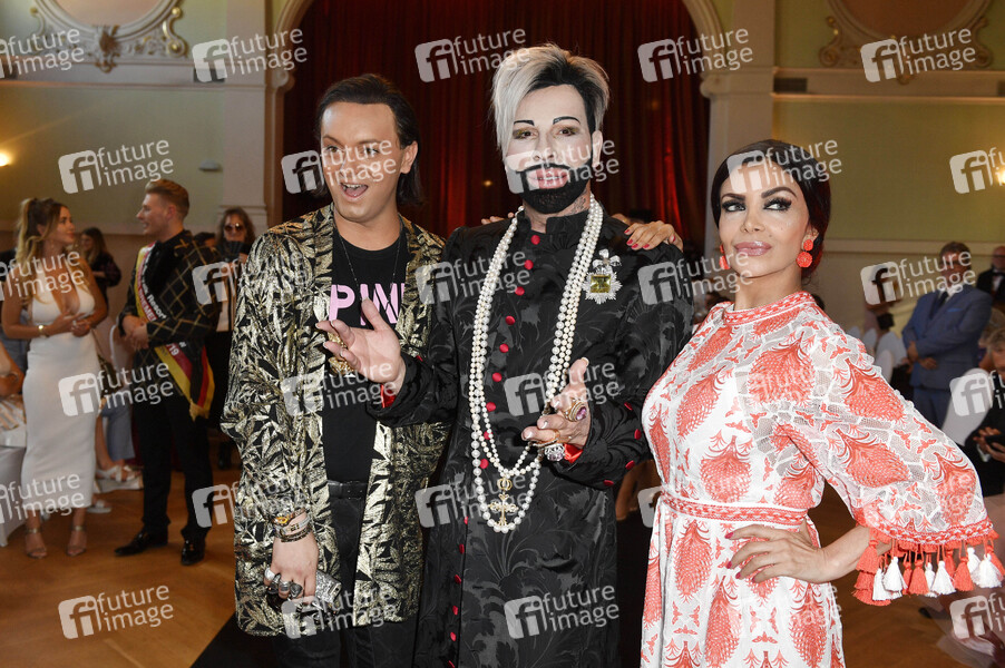 Julian F.M. Stoeckel, Harald Glööckler und Kader Loth bei der Präsentation der Brautmodenkollektion Pompöös by Semiha Bähr im Ballhaus Pankow. Berlin, 28.06.2019
