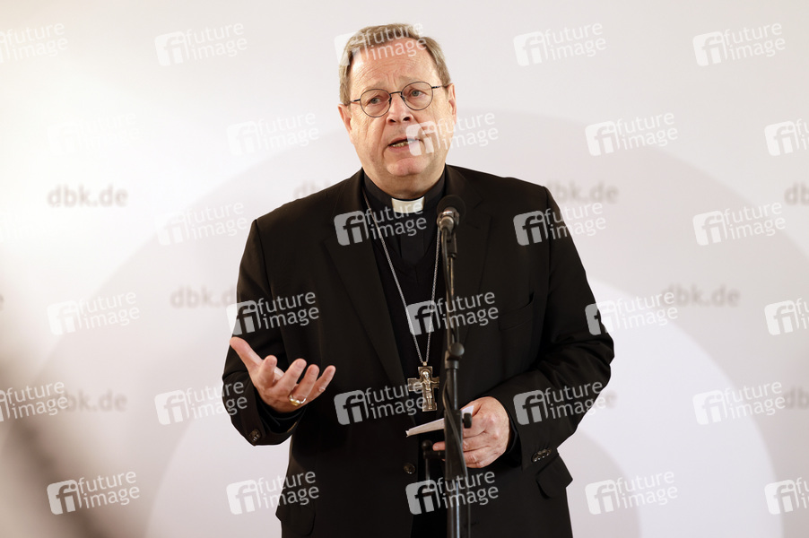 Georg Bätzing bei der Pressekonferenz zur Frühjahrs-Vollversammlung der Deutschen Bischofskonferenz im Kloster Steinfeld. Kall-Steinfeld, 10.03.2025