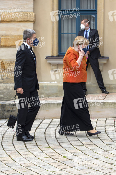 Angela Merkel mit Ehemann Joachim Sauer bei der Eröffnung der Richard-Wagner-Festspiele 2021 mit der Premiere von Richard Wagners 'Der fliegende Holländer' im Bayreuther Festspielhaus. Bayreuth, 25.07.2021