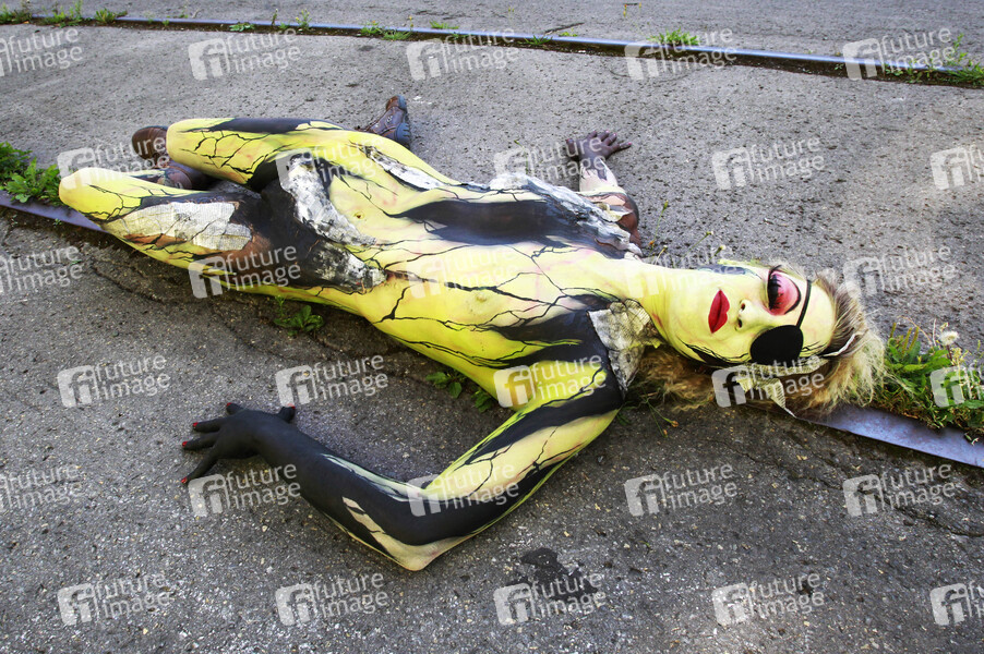Bodypainting, Erotik, Frau, Mädchen, nackt, draußen, weiblich, Körperkunst, Kunst, Malerei, Augenklappe, erotic, woman, girl, nude, outdoor, female, body art, body painting, eyepatch