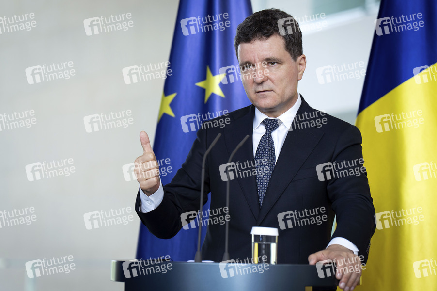 Nicusor Dan beim Empfang des Präsidenten von Rumänien zu einem gemeinsamen Gespräch mit dem Bundeskanzler mit anschließendem Pressestatement im Bundeskanzleramt. Berlin, 18.07.2025