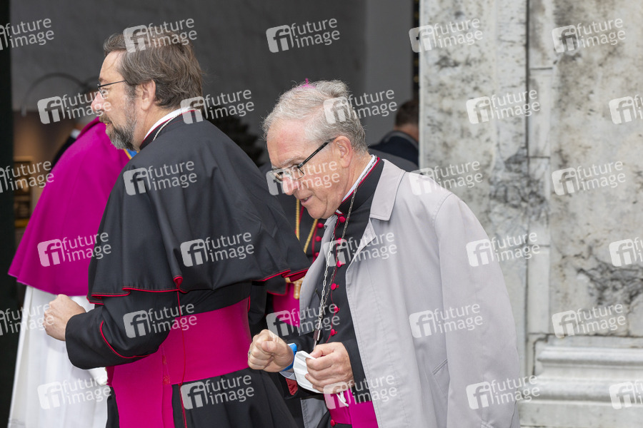 Bischof Jean-Pierre Delville und Bischof Pierre Warin beim ökumenischen Gottesdienst für die Opfer der Flutkatastrophe im Hohen Dom zu Aachen. Aachen, 28.08.2021