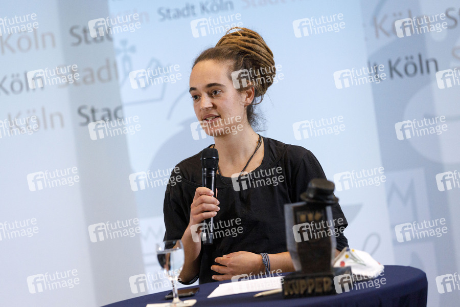 Carola Rackete erhält die mit 10.000 Euro dotierte Auszeichnung für ihr besonderes Engagement in der Flüchtlingshilfe bei der Verleihung des Karl-Küpper-Preises, der dieses Jahr zum 1. mal in Köln an Menschen vergeben wird, die sich für den Schutz der Demokratie und gegen Rassismus, Antisemitismus und jede Form der Diskriminierung engagieren, im Rathaus. Köln, 19.10.2020