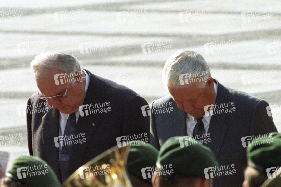 Politiker, CDU, 1982-1998 der sechste Bundeskanzler der Bundesrepublik Deutschland, 1991-1999 der erste Präsident Russlands, Politik, Außenpolitk, Staatsbesuch, Verabschiedung, Besatzungszeit, Besatzungsmacht, Siegermacht, Armee, Soldaten, Uniform, Parade, Militär, Berlin-Brigade, Streitkräfte, Alliierte, Kbsw, Militärparade, Abrüstung, Zeitgeschichte, Zeitgeschehen