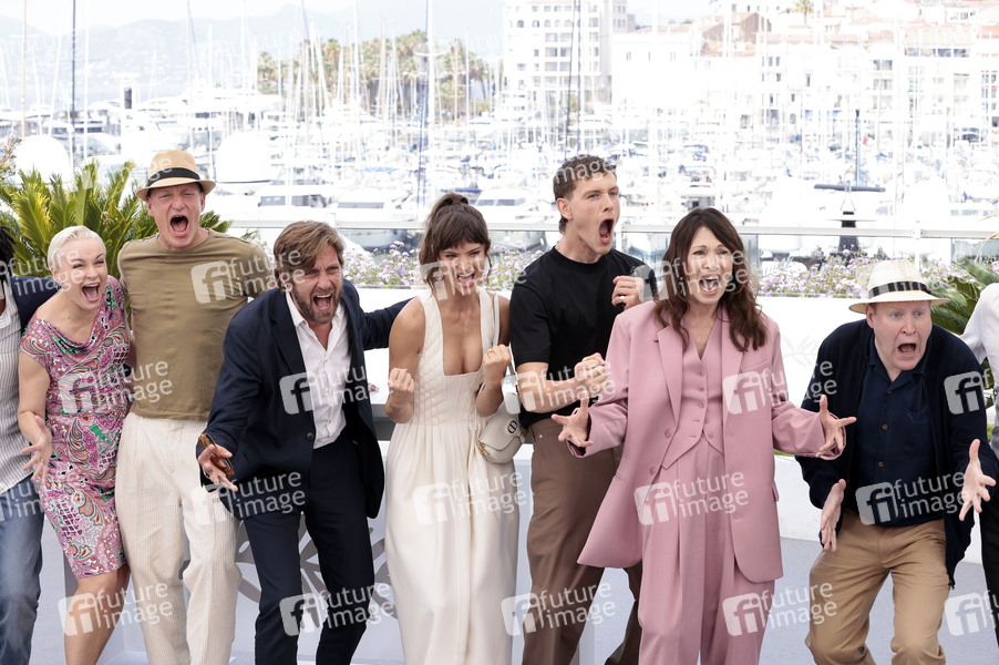 Vicki Berlin, Woody Harrelson, Ruben Östlund, Charlbi Dean Kriek, Harris Dickinson, Iris Berben und Henrik Dorsin beim Photocall zum Kinofilm 'Triangle of Sadness' auf dem Festival de Cannes 2022 / 75. Internationale Filmfestspiele von Cannes am Palais des Festivals. Cannes, 22.05.2022