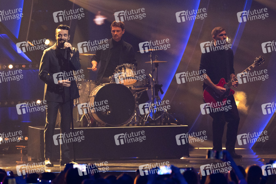 Giovanni Zarrella und Revolverheld in der ZDF TV-Show 'Die Giovanni Zarrella Show' in der Messehalle A1. Friedrichshafen, 15.02.2025