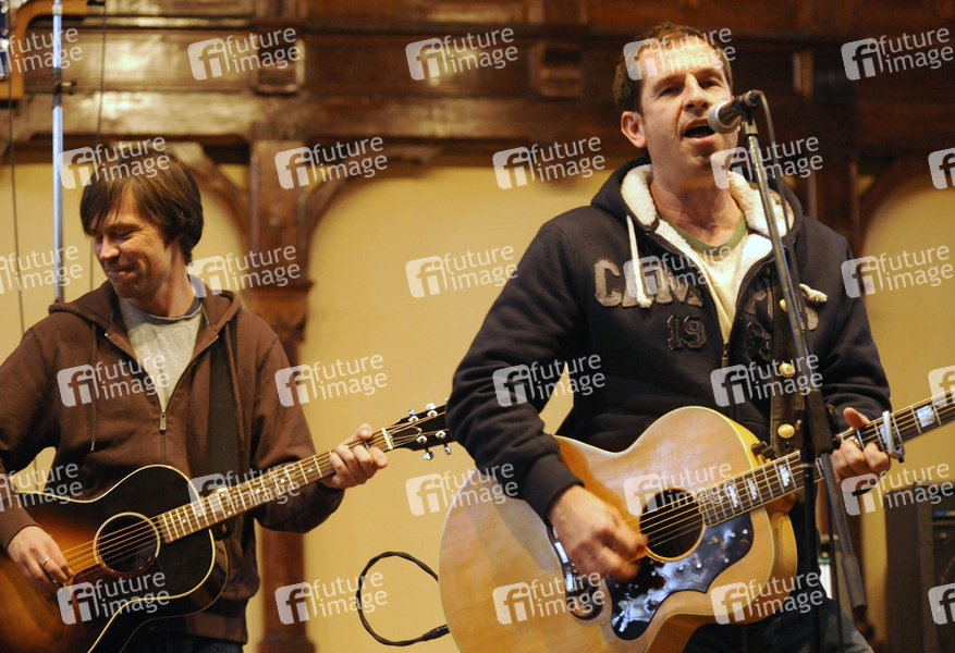 Michy Reincke mit Musiker Stephan Gade und der Insassen/Gefängnis-Band beim 'Jam in Jail – unplugged & live in Santa Fu', eine Benefizkonzertreihe für die Insassen der Justizvollzugsanstalt Hamburg-Fuhlsbuettel