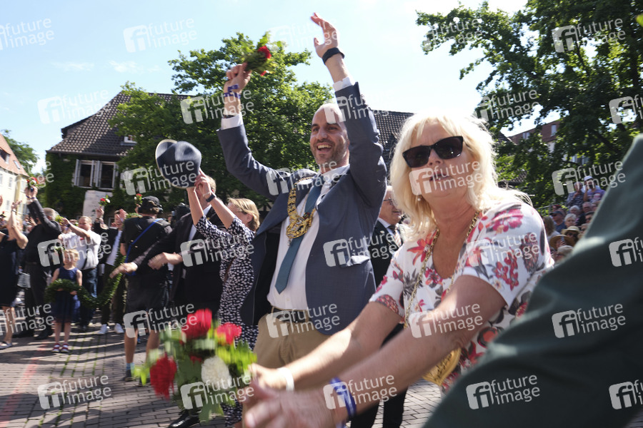 Belit Onay und Kerstin Klebe-Politze beim Schützenausmarsch zum 493. Schützenfest in der Innenstadt. Hannover, 03.07.2022